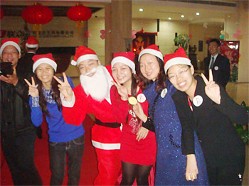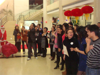 精心布置的大堂在這個夜晚綻放著特有的美麗笑容,圣誕樹上掛滿了一閃一閃的燈飾,樹下堆放著一盒一盒精致的禮品,圣誕老公公在大門口迎接著到來的一百來位嘉賓。每一位參加晚會的嘉賓都準(zhǔn)備了一份神秘的禮物,投放到碩大的圣誕禮物袋里。來自各個部門的精英主持人,他們伶俐和機智的引導(dǎo)貫穿著晚會始終,載歌載舞的氣氛讓大家在輕松愉悅度過了一個美好的平安夜。